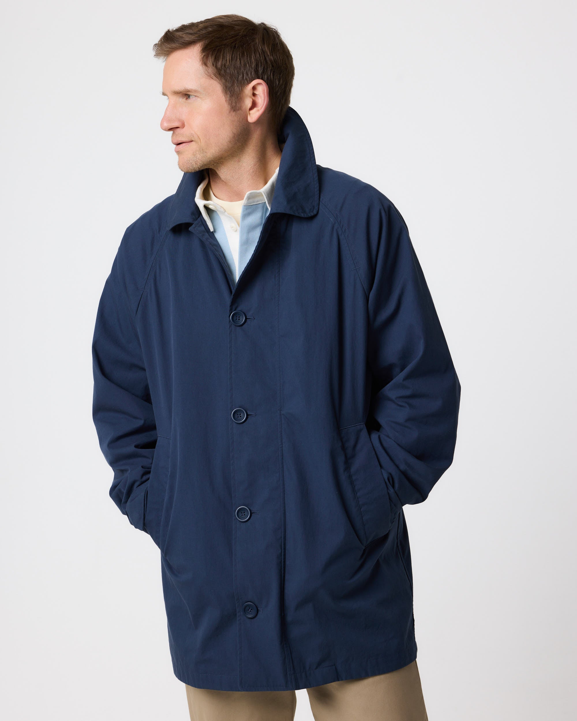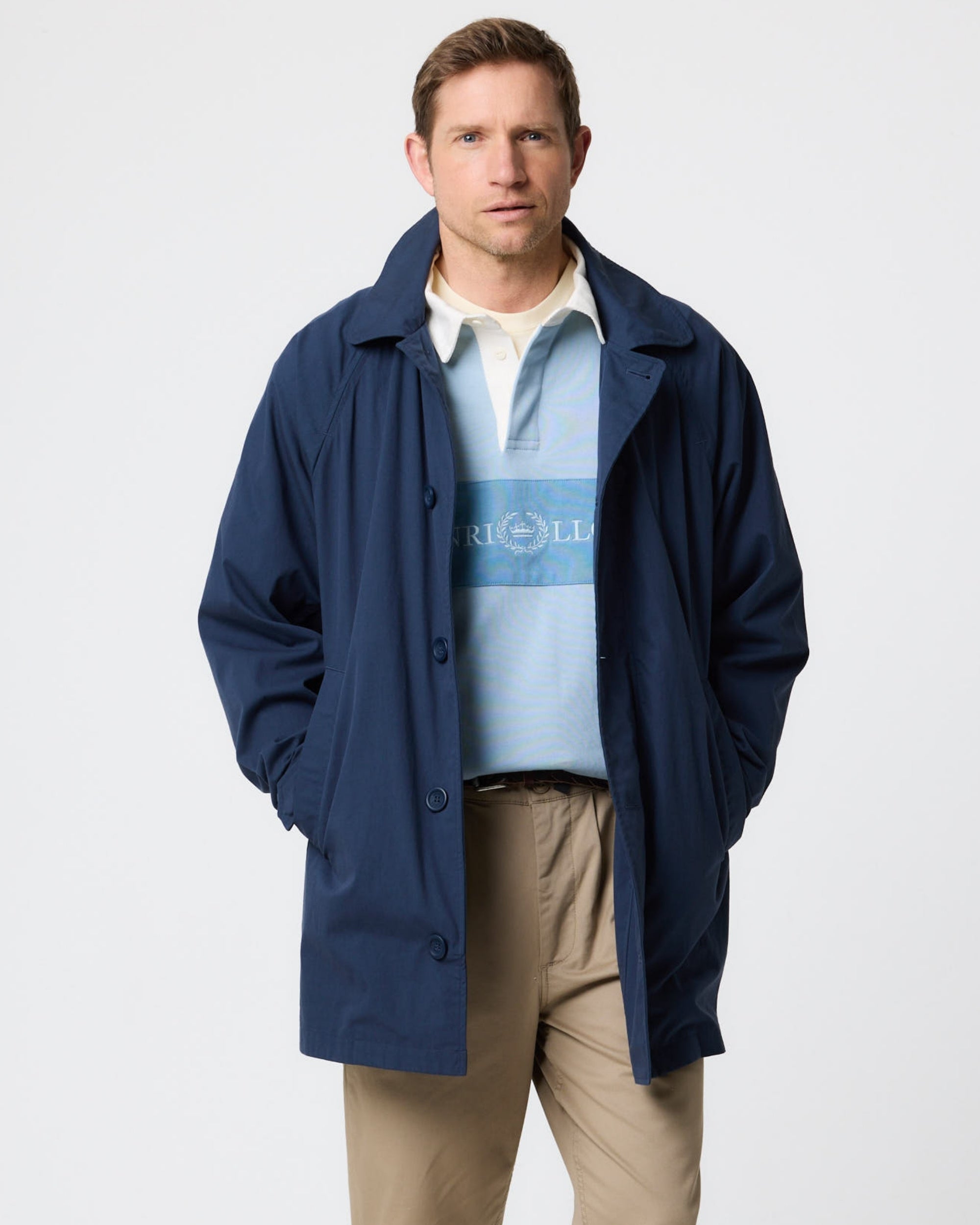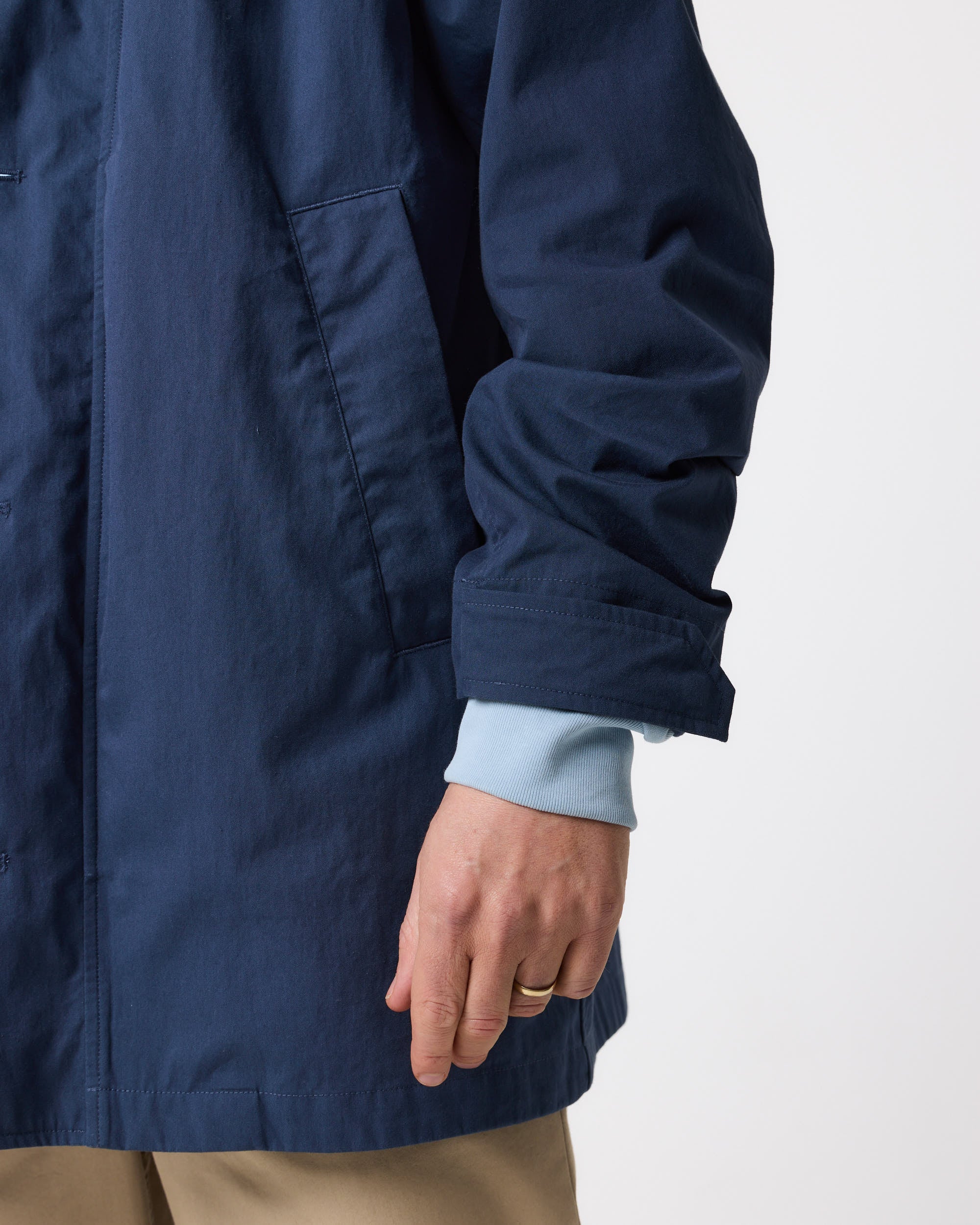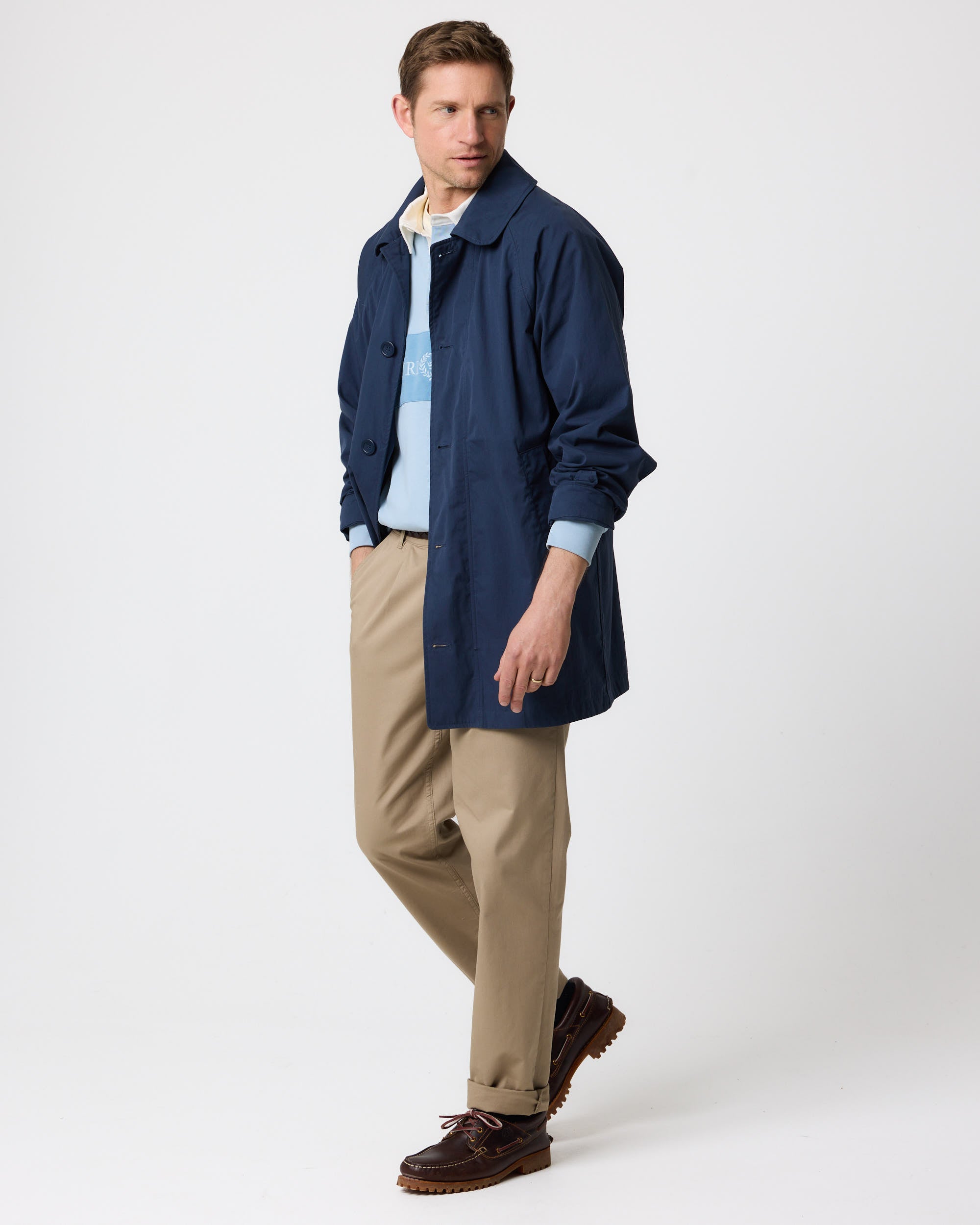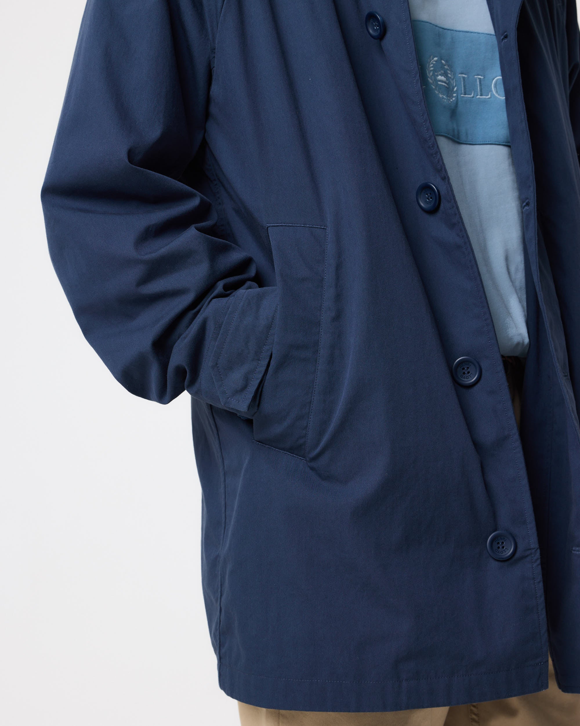 A fresh take on the iconic Consort jacket in navy blue, reimagined for warmer months. Crafted from a lightweight crinkle cotton-nylon blend, this summer-ready edition delivers a refined, breathable feel while retaining a touch of weather protection thanks to its eco-conscious C0 water resistant finish. Staying true to the original, it features the same timeless styling and signature detailing, now in a lighter, more versatile fabric that’s perfect for the city, coast, or casual outdoor layering.