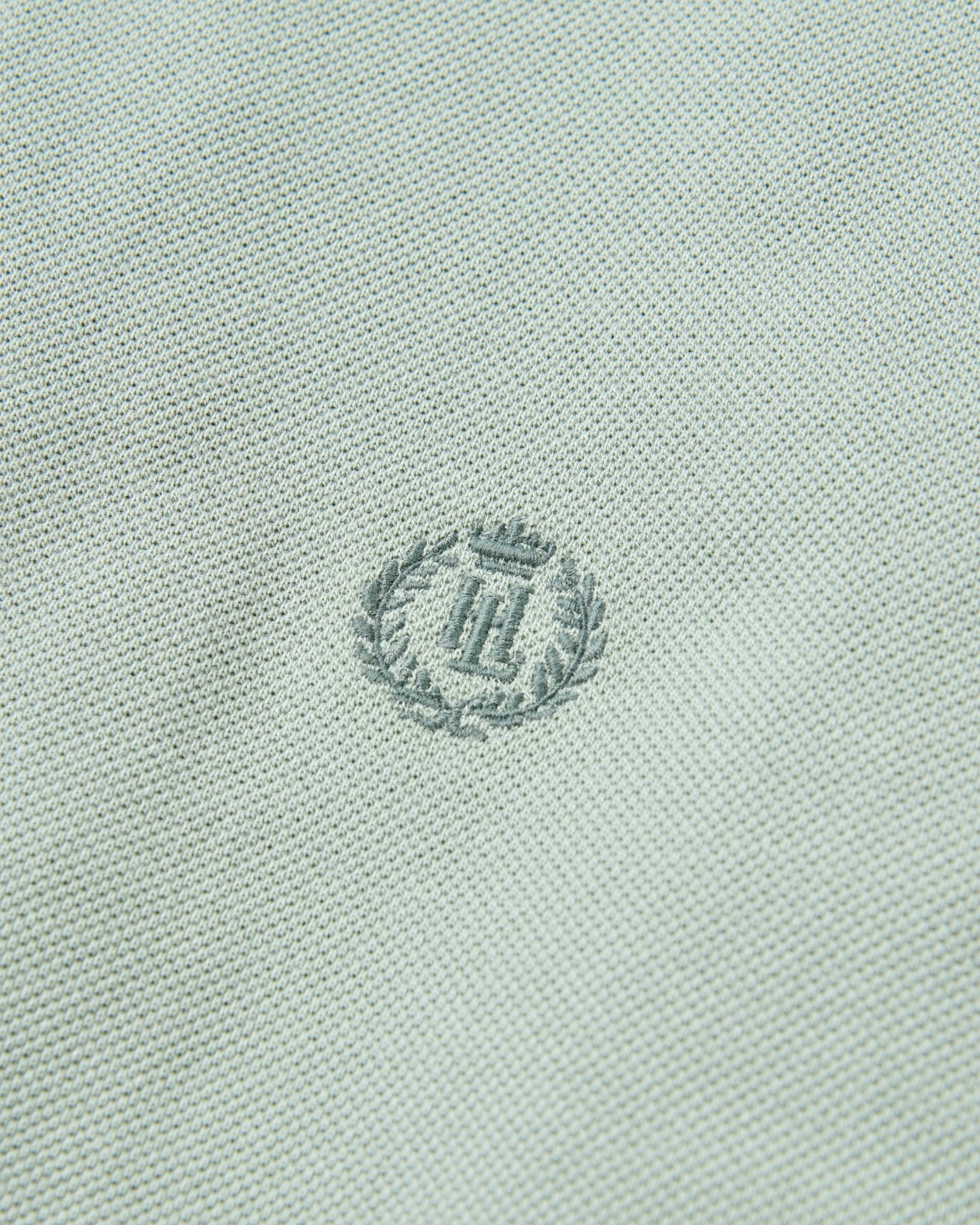 Classic pale jade short sleeve polo in a pique fabric with knitted rib collar & cuffs. 100% Organic Cotton with button closure on the centre front and Laurel and Crown embroidery at left chest.