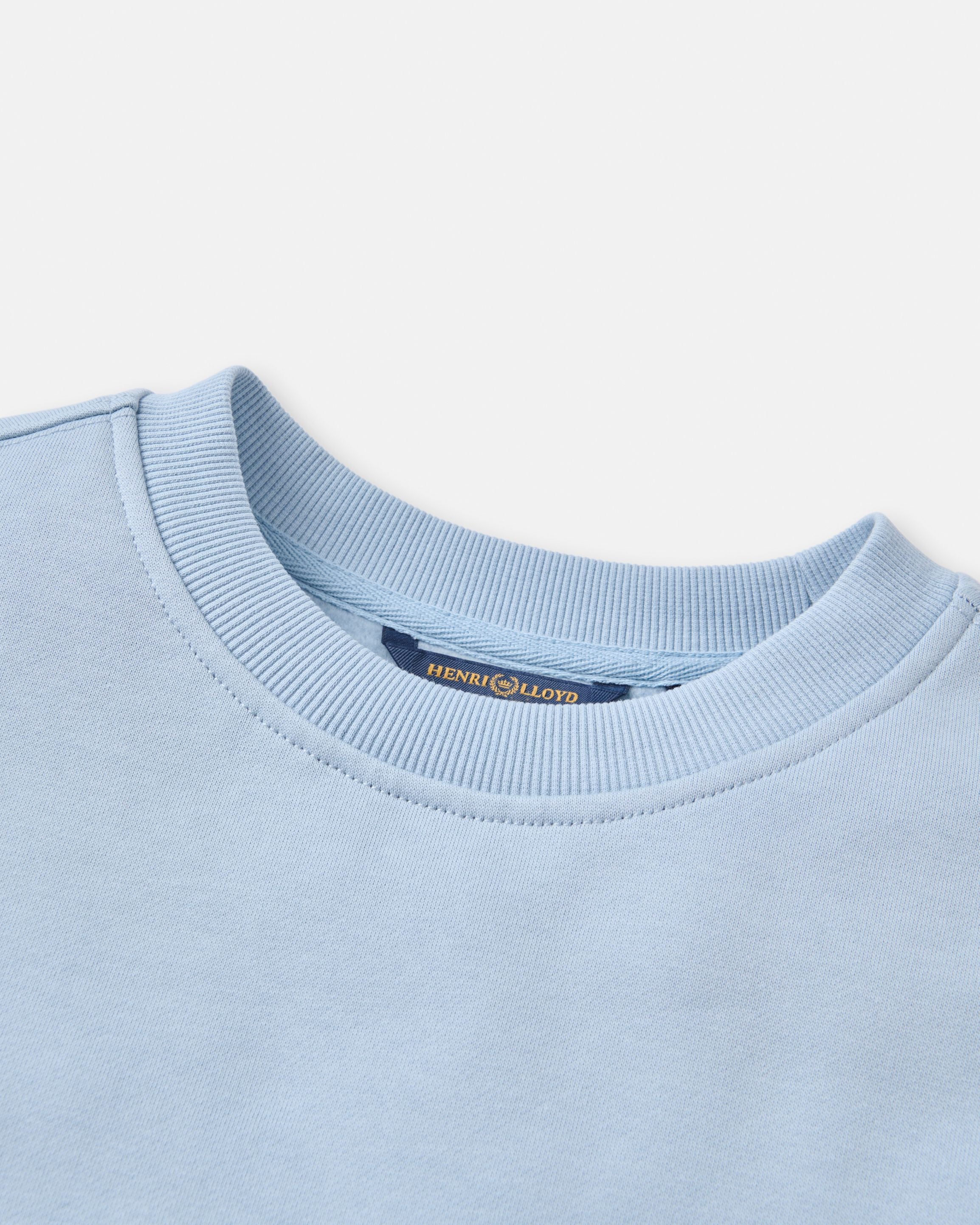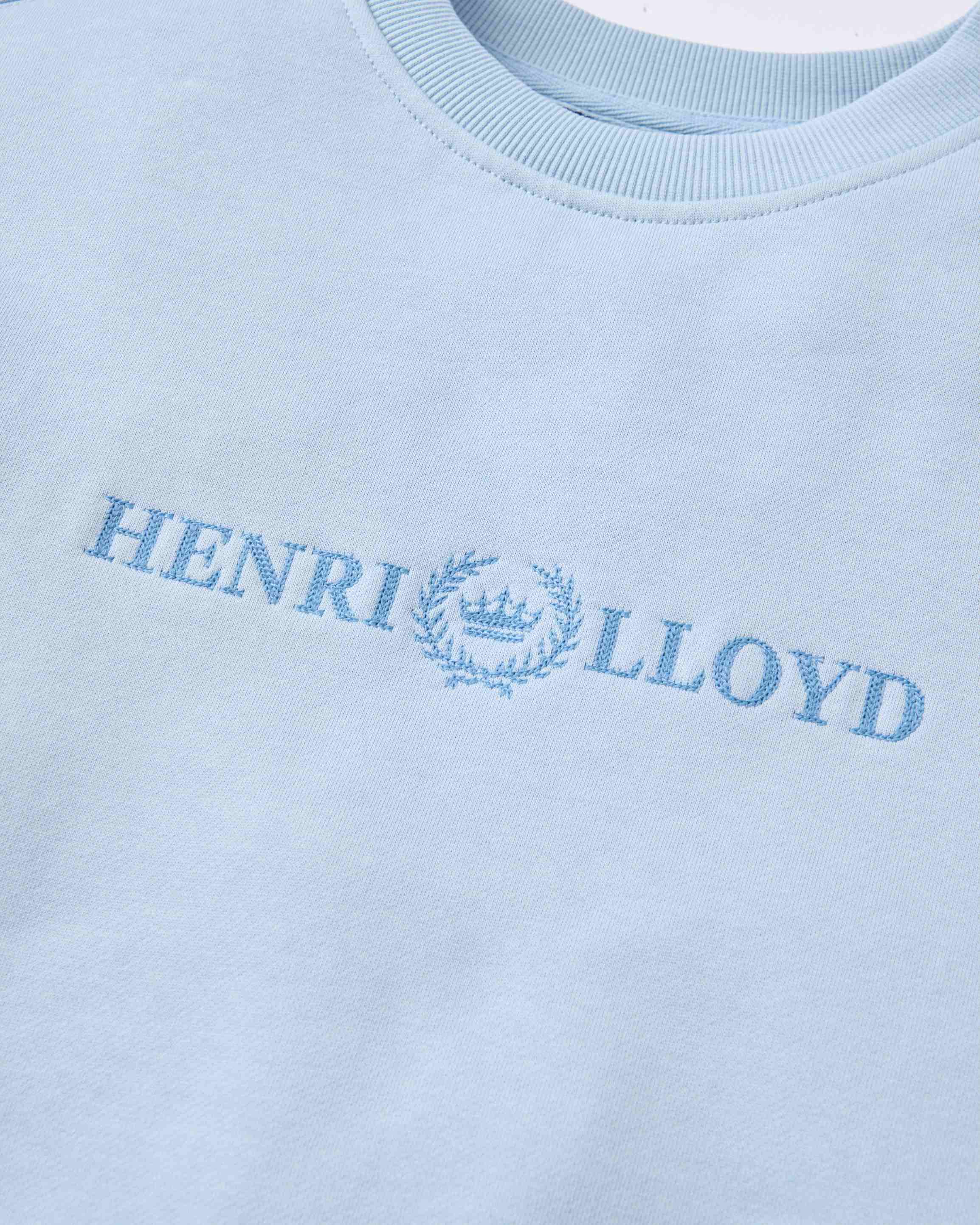 This Henri-Lloyd sweatshirt in fog blue combines comfort and style, featuring high-quality materials and distinctive design elements, including heavyweight 315gsm brushback sweat fabric, ribbed collar and cuffs, and unique large chain stitch branding at the center chest. This sweatshirt blends quality construction with modern aesthetics, making it an ideal choice for relaxed settings.