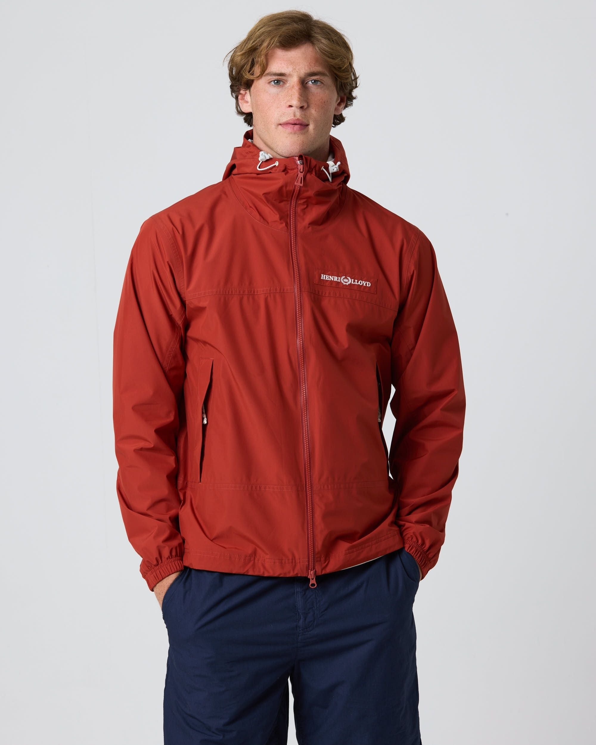 Lightweight yet protective, the Freo Red Sandown Jacket is crafted from a two layer fabric with mesh lining for breathable comfort. It is designed with set in sleeves, elasticated cuffs, welted zipped hand pockets and an adjustable hood. The grown on three panel hood with front adjusters works with the YKK Aquaguard zip finished with a Henri-Lloyd Trapezoid Zip Puller to keep wind and rain at bay. An adjustable hem ensures a secure fit, while branding comes via an embroidered self fabric chest patch featuring the Henri-Lloyd linear logo. Functional details include sailing inspired navy and white adjuster shockcords and an external back neck hanging loop.