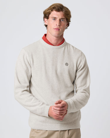 The Teddington Crew Knit in Off White balances clean design with warmth and softness, thanks to its 80% wool and 20% polyamide construction. It features a 12gg fine-gauge knit for lightweight comfort, while the set-in sleeve design adds structure to the silhouette. Tonal direct embroidery at the chest delivers a refined, understated finish. Crafted with fully fashioned true knit construction, this piece offers timeless style and premium craftsmanship, ideal for cooler seasons.