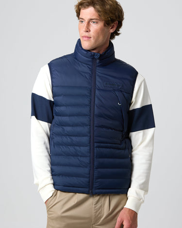 The Bergen Gilet in Navy is a lightweight, high-performance layer built for adaptable warmth. Designed to be worn alone or under an outer shell, it provides insulation without compromising mobility. Made from 100% post-consumer recycled NetPlus® ripstop with a 47gsm water-based PU coating, it’s reinforced with 100% recycled polyester trim (37gsm). A C0 durable water-repellent finish offers light moisture protection, while 95g REPREVE® recycled PET insulation delivers warmth without unnecessary bulk.