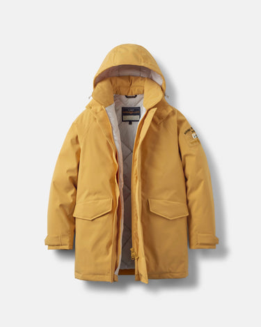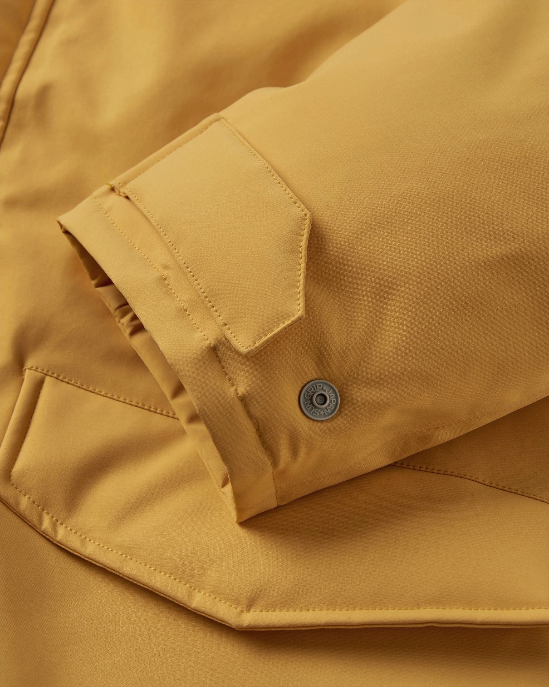 Designed in Washed Yellow with signature RWR overarm embroidery, the Consort RWR Jacket is built to be both protective and breathable. Seam taped, waterproof, and windproof, it includes a C0 PFC-free durable water repellent coating for added weather resistance. With reliable waterproofness and breathability, it’s ready for everyday or coastal wear. The insulation is Repreve, made using 100% recycled plastic bottles. It also includes an insulated collar and a removable hood with adjustment.