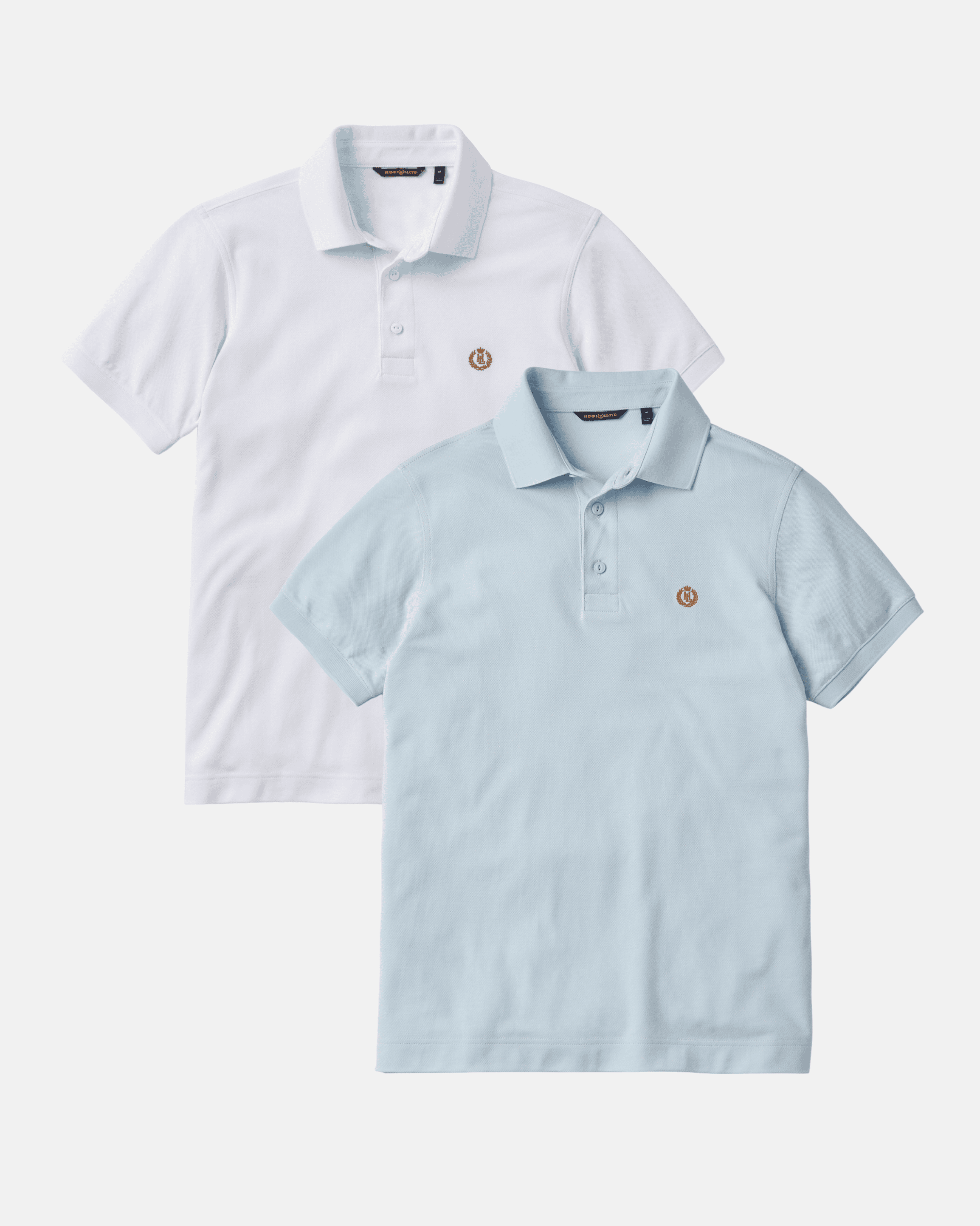 Both styles are finished with a ribbed collar and cuffs, a buttoned centre-front placket, and subtle Laurel and Crown embroidery at the chest, maintaining a consistent, elevated look whether worn alone or rotated through the week. From coastal layering to smart-casual wear, this two-pack provides dependable style with a premium feel.