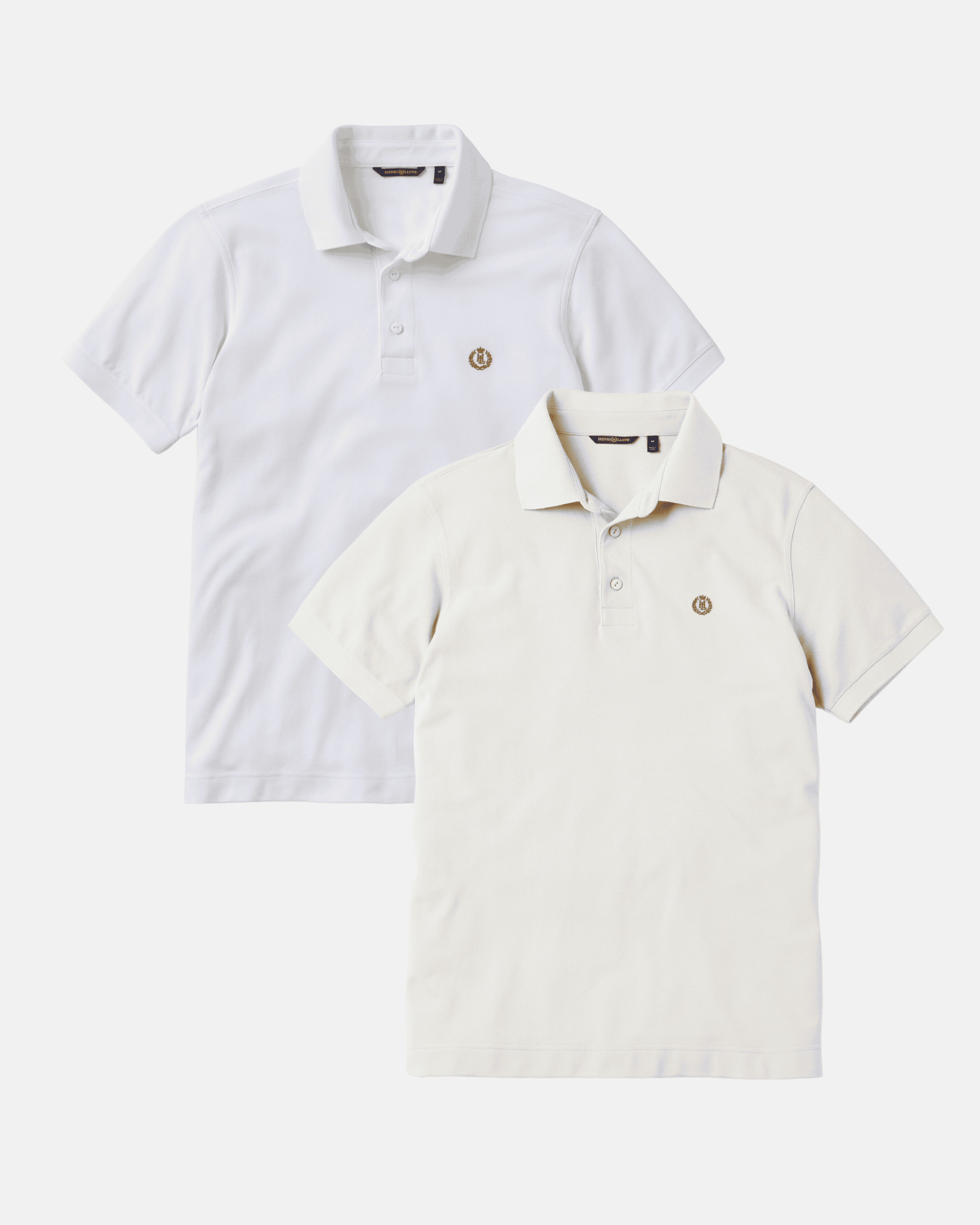 Timeless and versatile, this White and Off White short sleeve polo 2-pack delivers everyday flexibility in a refined, considered form. Each polo is crafted from 100% organic cotton in a breathable pique knit, offering natural comfort and durability across seasons.