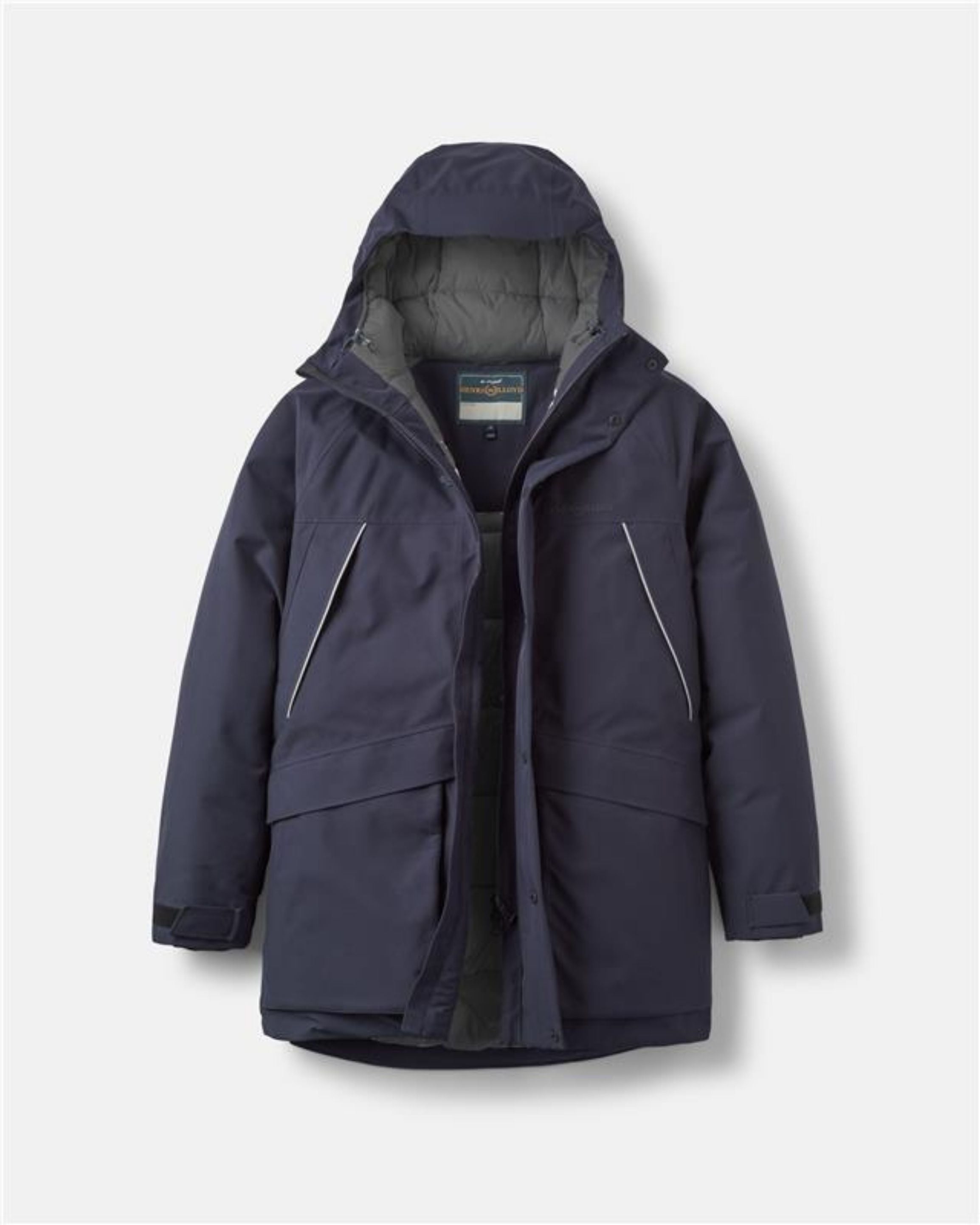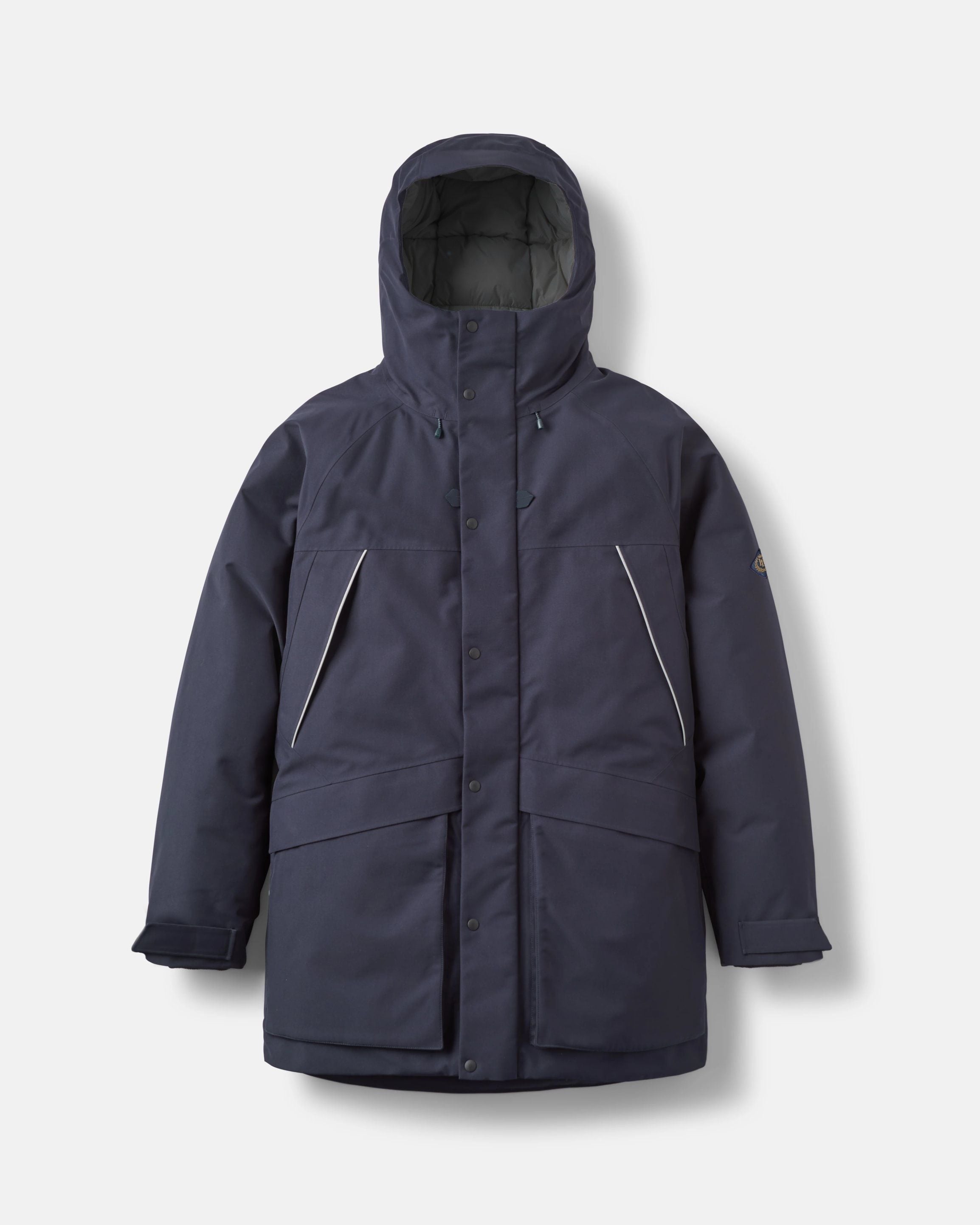 Engineered for extreme conditions, the Dark Navy Navigator Parka offers the perfect balance of warmth and waterproof protection. Crafted from a 2-layer waterproof membrane shell fabric with PU dot lamination hydrophilic membrane, it delivers a 20,000mm waterproof rating and 20,000mm breathability rating (JIS-L1092B, JIS-L1099 B1). The C0 durable water-repellent finish and fully seam-taped construction ensure full protection against the elements, while 400g REPREVE® 100% recycled PET insulation provides outstanding warmth. A fusion of technical materials and performance-led design makes it a trusted choice for outdoor expeditions.