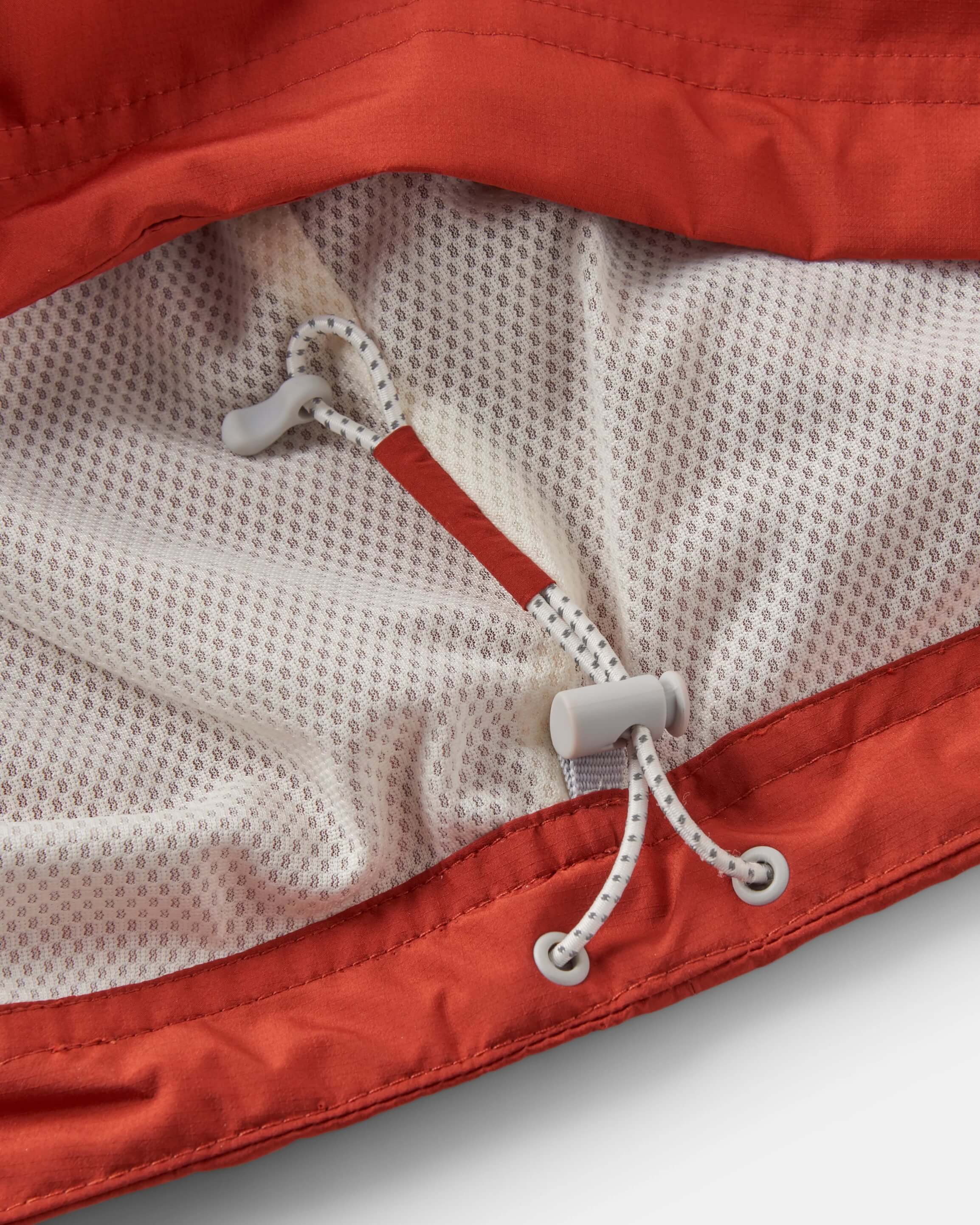 Lightweight yet protective, the Freo Red Sandown Jacket is crafted from a two layer fabric with mesh lining for breathable comfort. It is designed with set in sleeves, elasticated cuffs, welted zipped hand pockets and an adjustable hood. The grown on three panel hood with front adjusters works with the YKK Aquaguard zip finished with a Henri-Lloyd Trapezoid Zip Puller to keep wind and rain at bay. An adjustable hem ensures a secure fit, while branding comes via an embroidered self fabric chest patch featuring the Henri-Lloyd linear logo. Functional details include sailing inspired navy and white adjuster shockcords and an external back neck hanging loop.